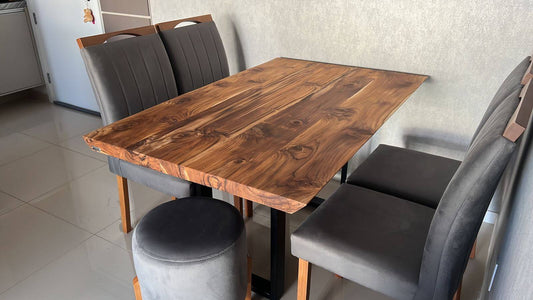 Mesa de Jantar Pequia Casca LiveEdge pés madeira